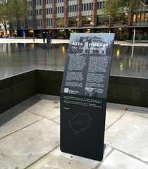 Auf dem 2017 neu gestalteten Platz der Alten Synagoge in Freiburg findet sich als Ort der Erinnerung ein Wasserspiegel, der die Grundrisse der ehemaligen Synagoge nachzeichnet. Auf zwei Informationsstelen wird die Historie des Ortes erläutert und um ein angemessenes Verhalten gebeten.
