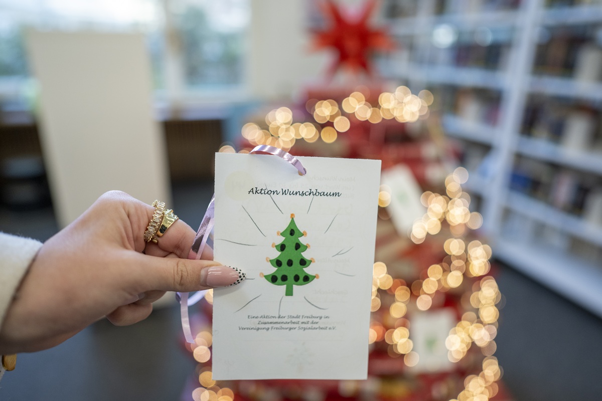 Den ganzen Dezember waren die Wunschbäume im Rathaus im Stühlinger und in der Statdbibliothek geschmückt mit 300 Wunschkarten von Kindern aus armutsgefährdeten Familien. Jetzt sind sie leer, alle Geschenke verteilt und die Kinderwünsche erfüllt.