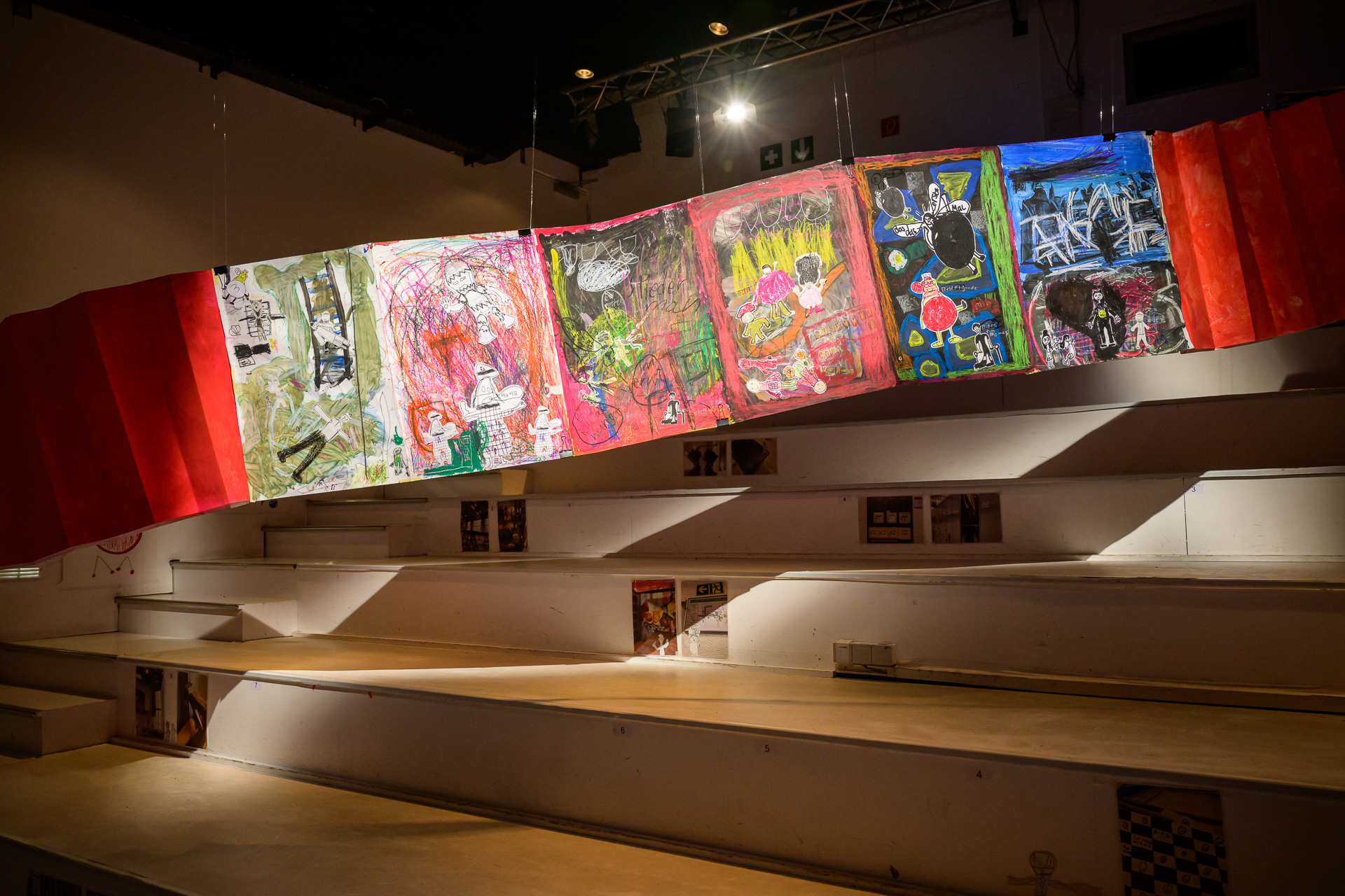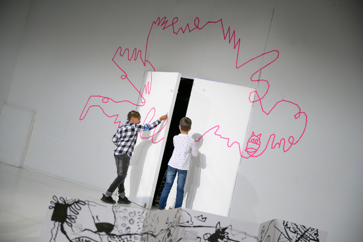Eine Woche lang schreiben, malen, sprechen und bauen Schüler*innen zusammen mit einem Künstler und einem Schauspieler in der Jugendkunstschule. Die Inspirationen liefern die Räume hinter den Kulissen des Theater Freiburg, die sie zum Auftakt in einer Theaterführung kennenlernen. Zum Finale kehren die Schüler*innen ins Theater zurück und präsentieren ihre Eindrücke in der Aktion "Hinter den Räumen" schauspielerisch und künstlerisch.