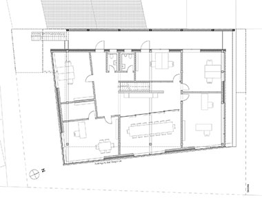 Am Objekt wird das Thema Holz „durchdekliniert“: Vom naturbelassenen Weißtanne-Rundholzstamm im Eingangsbereich, über Tragkonstruktion und Fassadenmaterial bis hin zu den Ausbaudetails und Dämmstoffen kommt der Baustoff Holz in handwerklich vorbildlicher Qualität zum Einsatz. Konsequent finden alle Bestandteile des Stammes Verwendung, unbehandelte Holzoberflächen schaffen eine im besten Sinne archaische Anmutung von außen und eine behagliche Atmosphäre im Innern. Das Gebäude verfügt über eine hohe Flexibilität im Grundriss und ermöglicht dadurch eine gute Anpassung an sich ändernde Nutzungsanforderungen.